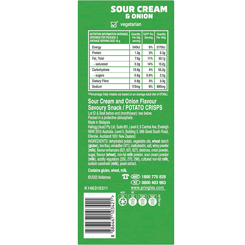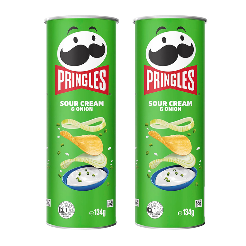 - Pringles Sour Cream & Onion stacked potato chips are a deliciously crisp savoury snack. Great for sharing, it’s the ideal savoury snack for a barbecue, picnic or party.